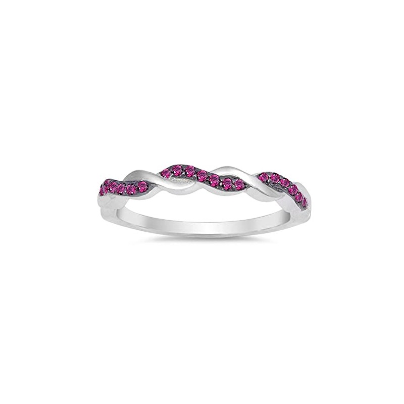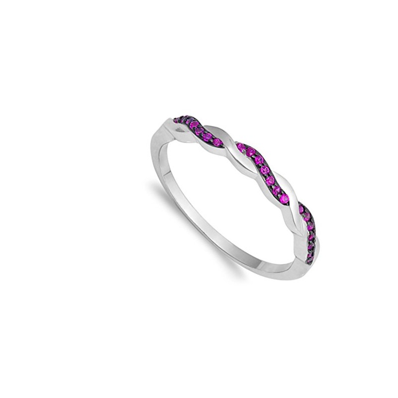 Simulated Ruby Bright Infinity Knot Stackable Ring .925 Sterling Silver Band Size 9