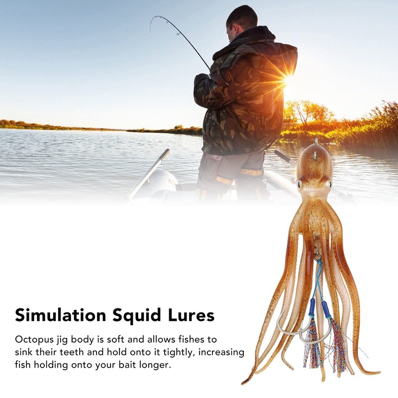 - Enhanced Realism: With its lifelike design, this fishing jig realistically mimics the movement of an octopus, the favorite prey of many fish species, dramatically increasing your odds of a successful catch.