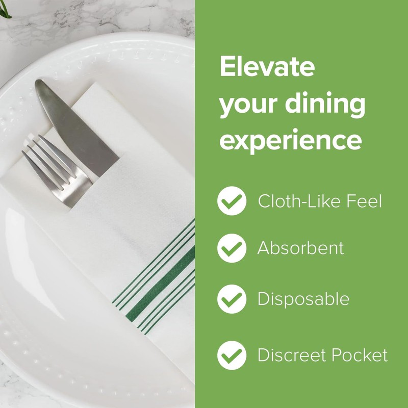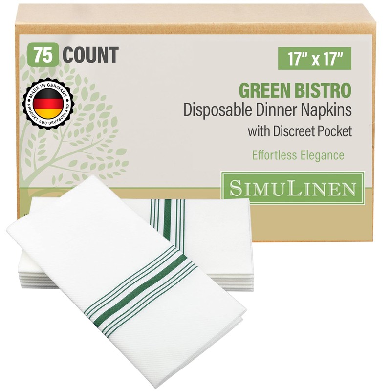 - Elegant: Our design & texture are created to imitate the refined appearance of cloth, adding a touch of sophistication to the table. Absorbent: Our napkins are designed to quickly & effectively absorb moisture. Cloth-like Feel: SimuLinen’s materials are carefully chosen to replicate cloth, providing a pleasant texture & enhancing the overall dining experience. Disposable & Recyclable: Unlike actual cloth, SimuLinen products are intended for single-use and can be easily disposed of after use.
