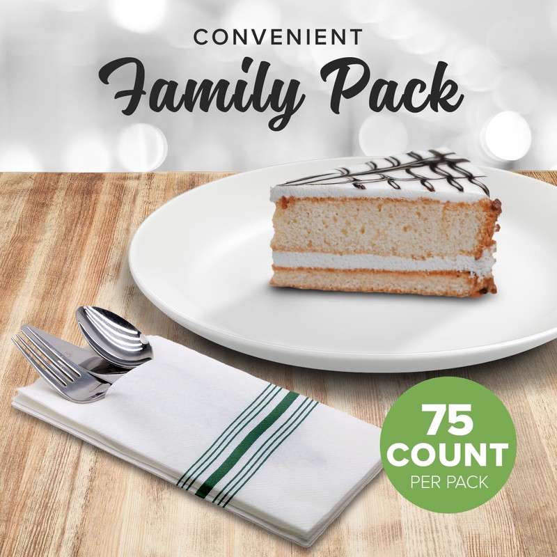 SimuLinen White and Blue Bistro Disposable Dinner Napkins with Pocket for Utensils, Decorative and Absorbent, Paper Napkins for Silverware, 17"x17", Box of 75