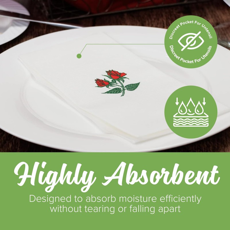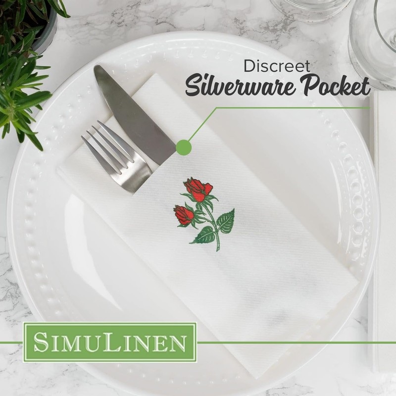 SimuLinen Double Rose Disposable Dinner Napkins with Pocket for Utensils, Dec...