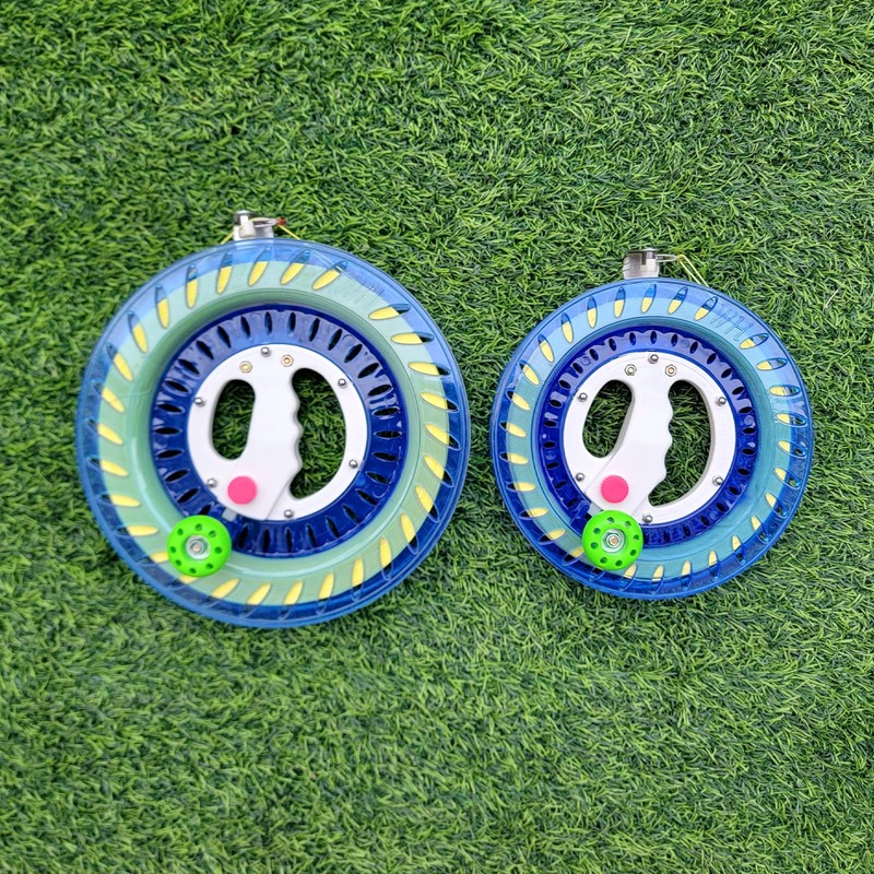• Easy to Control This kite winder features large size gyro handle, which is easy to handle for either beginners or professional flyers. Grip sapce sizes are 3.5in*2.5in, suitable for adults and kids to seize. All in all, this kite wheel is comfortable to hold and use, fit for flying all kinds of kites.
