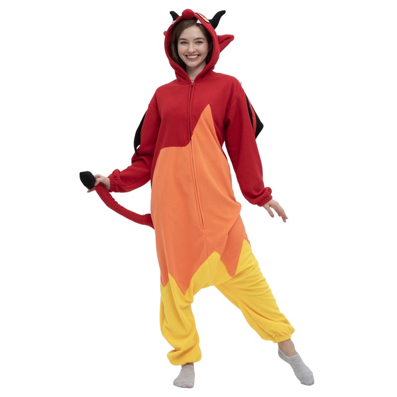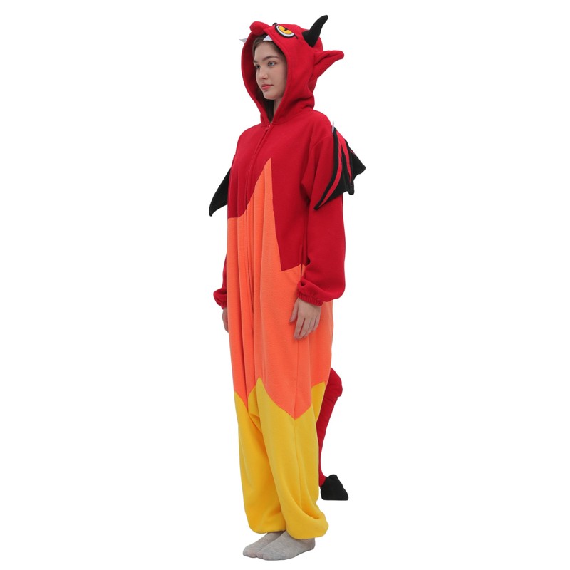 SimZoo Adult Animal Onesie Pajamas, Men and Women's Hell Red Devil Animal Cosplay Costume Sleepwear, One-Piece Unisex Homewear Small