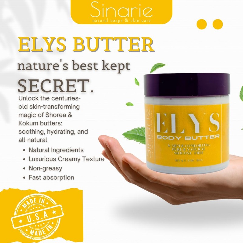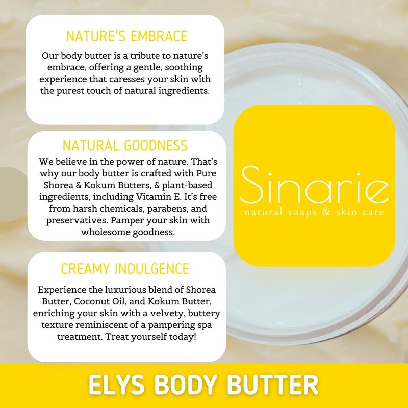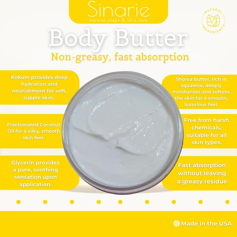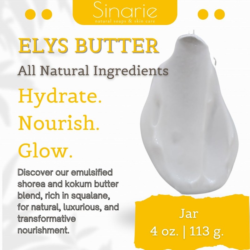 Sinarie Emulsified Body Butter - Luxurious Moisturizing Lotion with Shorea, Squalane, Coconut Oil & Kokum Butter, 4 oz (4 oz., Elys - Warm & Comforting)
