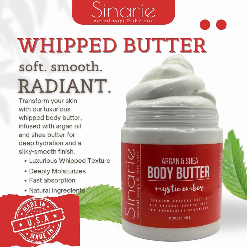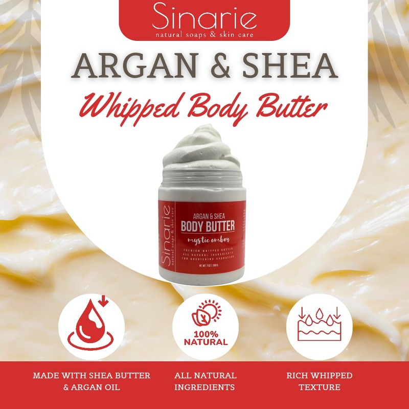 Sinarie Whipped Body Butter with Argan Oil, Shea & Cocoa Butter - Deep Moisture, 7 oz. (7 oz., Mystic Ember)