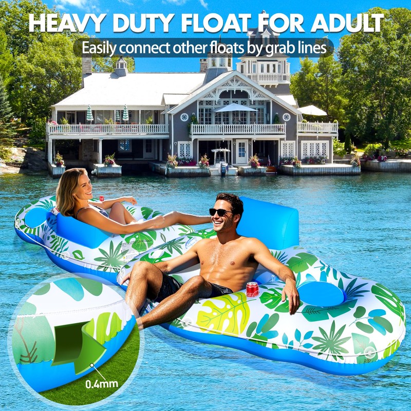 - Adult Floaty Highlights: This floaty for adult comes with pad eyes and grab line to safely tie to docks, poolsides for extra peace of mind. You can also tie it to other floaties or deck for a leisurely time in the water. Whether you're sharing fun with friends or enjoying it by yourself, it's the perfect choice. Inflate and deflate with ease using an electric pump for quick set up and convenient storage, making it the ideal companion for summer pool party.