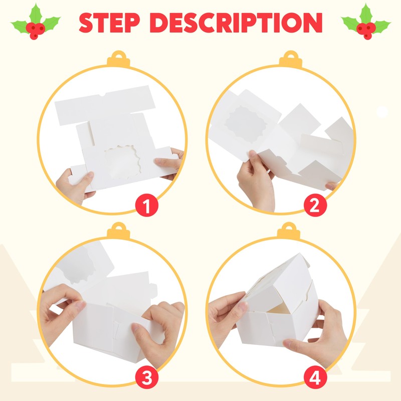 - Transparentes Fenster: Jede Cupcake-Box verfügt über ein transparentes Fenster im oberen Bereich, das Ihre Desserts vor der Luft schützt