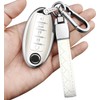 Sindeda Compatible Nissan Key Fob Cover - Leather Keychain, Soft TPU Shell Case - Fit Altima Sentra Maxima Rogue Armada Pathfinder Infiniti Smart Remote Key (White, 5 Buttons)