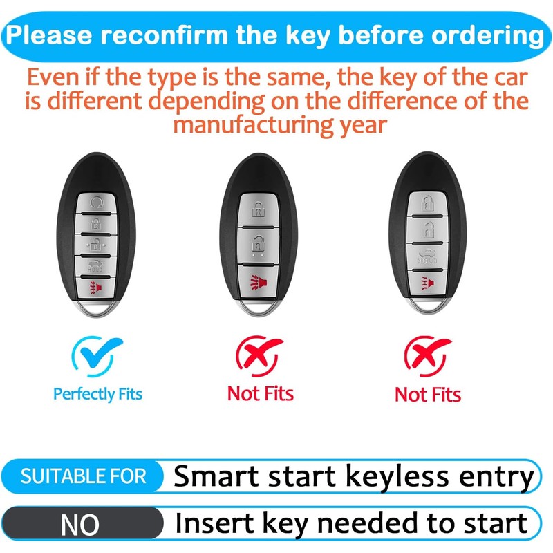 [Fits Models] This key holder is suitable for Altima, Armada, Maxima, Murano, Pathfinder, Rogue and Infiniti JX35, Q50, Q60, QX56, QX60, QX80 5 buttons smart key.