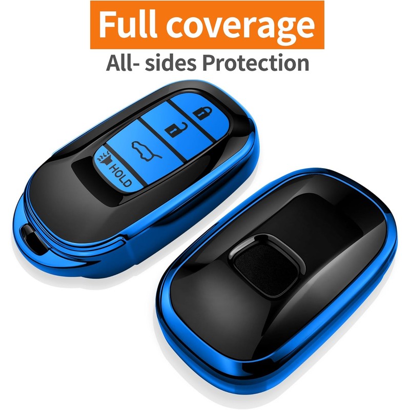 Sindeda for Honda Key fob Cover with Leather Keychain Soft TPU Full Cover Protection,for 2022 2023 2024 2025 Civic Accord HR-V Pilot CR-V,4-Buttons Key Fob Shell(Blue)