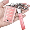 Sindeda for Jeep Key Fob Cover with Keychain Soft Full Protection Key Shell Compatible with Grand Cherokee L Grand Wagoneer 2021-2025 Smart Key 5 Buttons-B(Chalk Pink)