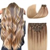 Sindra Haarverlängerung zum Anstecken, Naturhaar, goldbraun, gemischt, Honig, goldfarben, #10/16/16, Extensions, Echthaar, 35 cm, 7 Stück/140 g