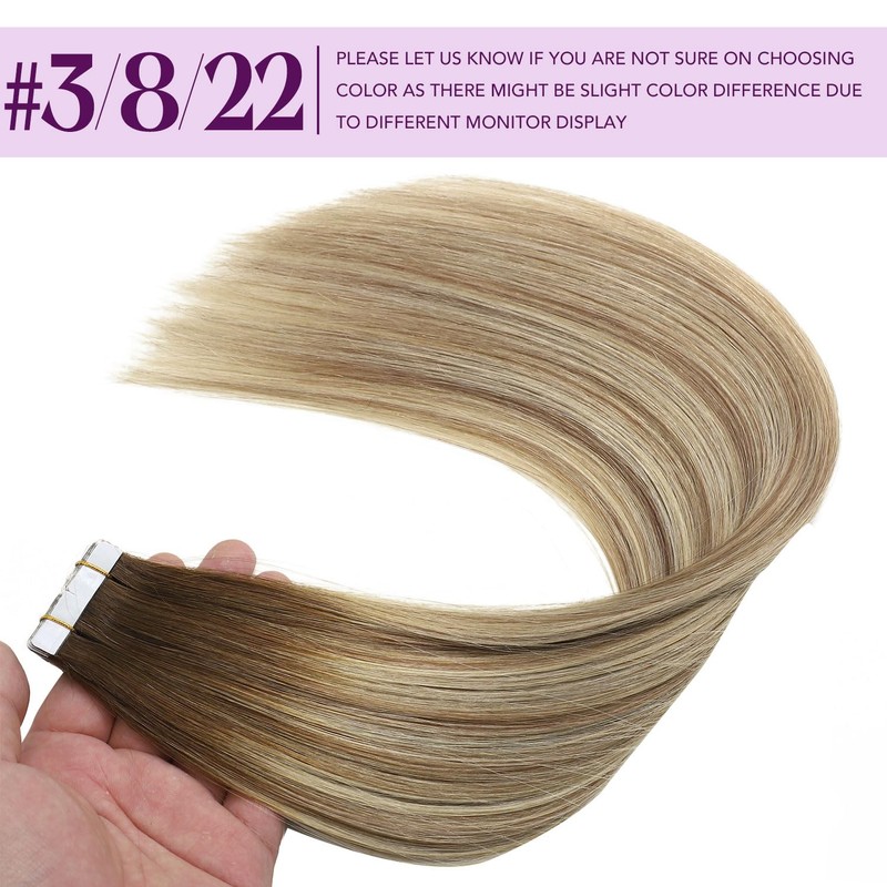 - Tape extensions real hair specification: each pack of tape-in hair extensions contains 20 pieces, 50 g weight, you can decide how many pieces to use according to your needs, from 14 inches to 22 inches to meet different hair lengths. For a full head, we recommend 2-3 packs