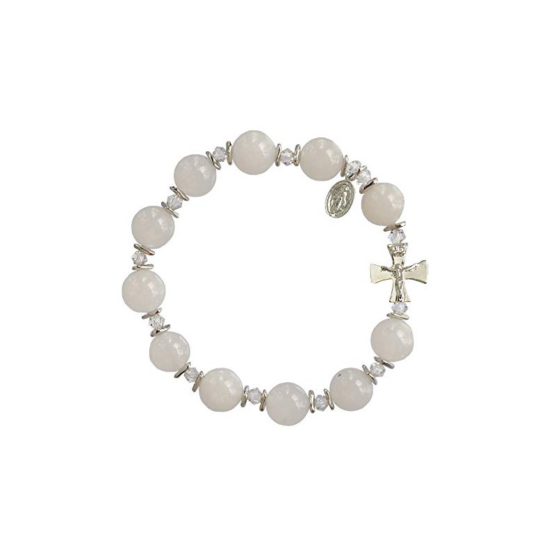 Sine Cera Rosary Bracelet White Jade 10mm, One Size, Genuine White Jade