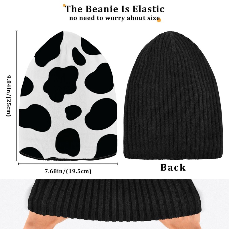 Sinestour White Cow Print Beanie Hats for Men Women Soft Warm Womens Winter Hats Mens Slouchy Beanie Skull Knit Hat Cap