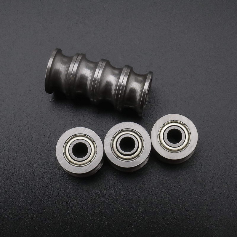 - Bearings have 1.5mm deep U groove that generally ride on a rail or track, 4mm/0.15inch inner diameter, 13mm/0.51inch outer diameter, and 7mm/0.27inch thickness.