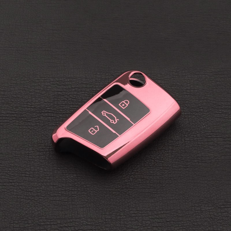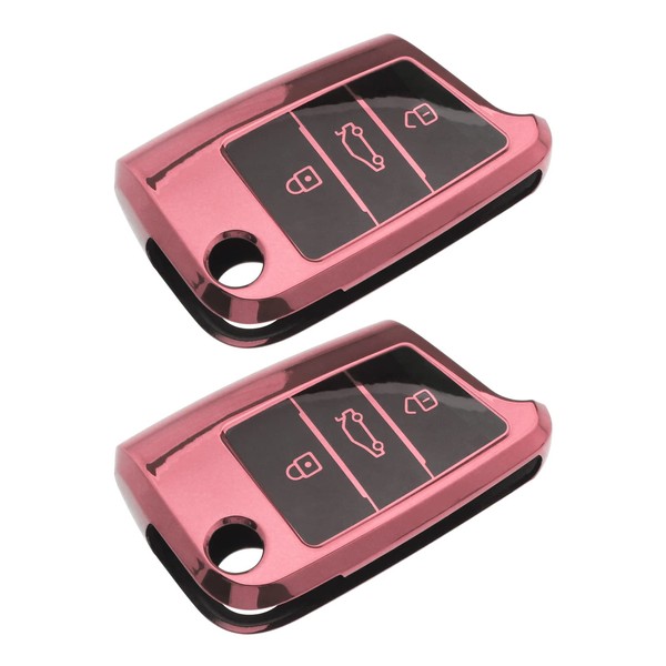SING F LTD 2PCS TPU 3 Button Car Key Cover Protector Case Shell Skin Jacket Compatible with VW Remote Flip Key Fob Pink Automotive Interior Accessories