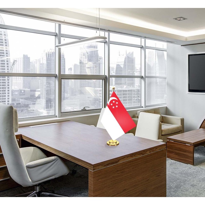 Singapore Desk Small Flag Set,5×8 Inch Mini Singaporean Desktop Banner,12" Metal Solid Pole Decor,Tiny Digital Printed Polyester Banner With Golden Base