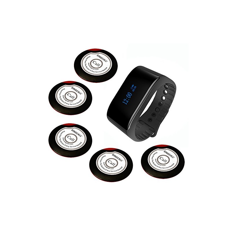 SINGCALL Wireless Calling System Waiter Service System, for Bank Restaurant Cafe Restaurant Hospital Factory Office, 5 Buttons 1 Waterproof Watch