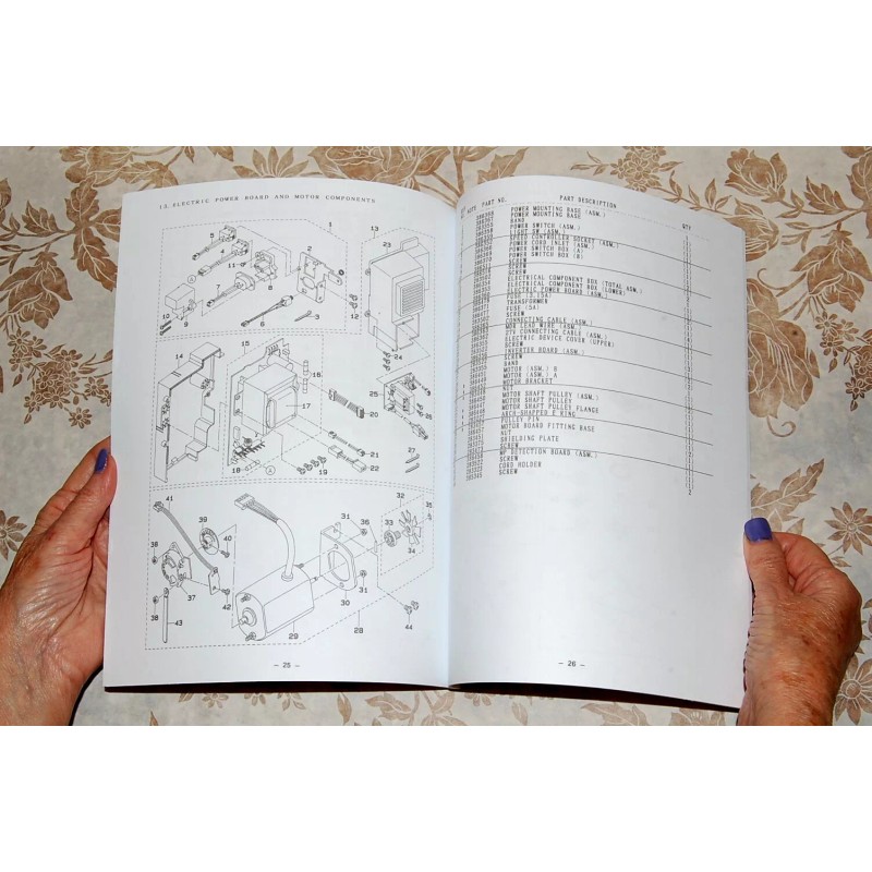 This 37-page manual is complete and very clean with no "black dots," smudges, stains, or any other imperfections. No pages are missing, dirty, or damaged. The manual includes illustrations, part numbers and descriptions of every single part of the machine, and much more.