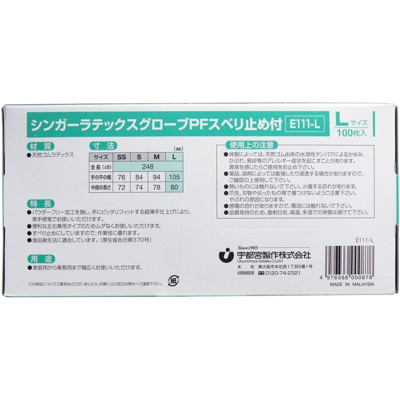 Singer Latex Gloves, Powder Free, Slide Stop, Large, Pack of 100