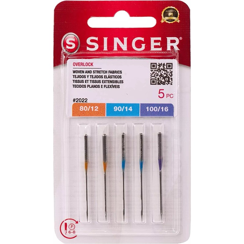 SINGER Overlock Serger Needles for Woven and Stretch Fabrics, Assorted, 5pcs