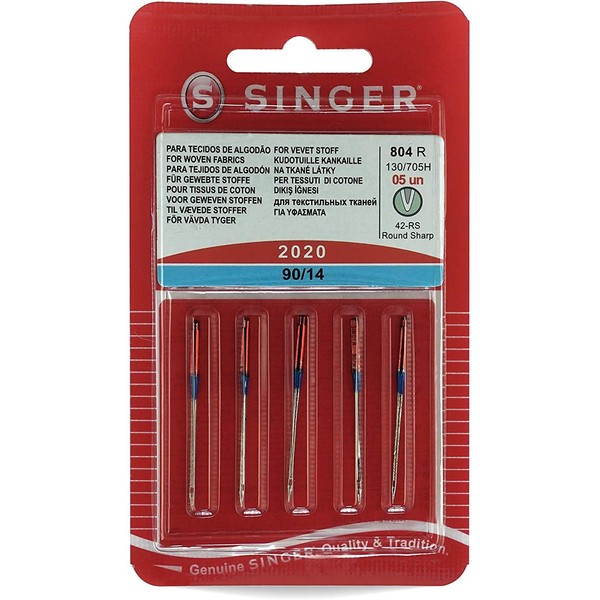 Singer Universal 2020 Sewing Machine Needles, Packet of 5, Size 90/14, Includes Large Needle Threader
