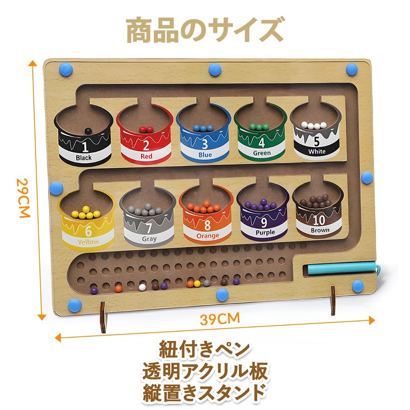 - 【Montessori Toy】This wooden Montessori magnetic board has 10 paint pots representing numbers 1 to 10, 65 magnetic beads in 10 bright colors, magnetic pen and stand. A matching game of color and number with a stylus pen. The magnetic ball is small, but it doesn't come out, so it is safe for small children. Helps you focus Educational toy for boys and girls ages 2-7