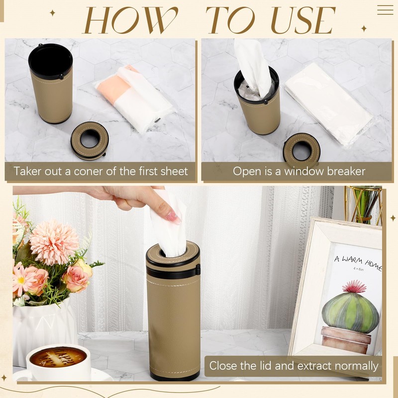 - Elegant and Sturdy Construction: the cylinder tissue box is made with quality PU leather and ABS plastic; This combination not only enhances the product's aesthetics but provides sturdy and durable use; Unlike the conventional cardboard tube, our tissues cylinder offers both functionality and style