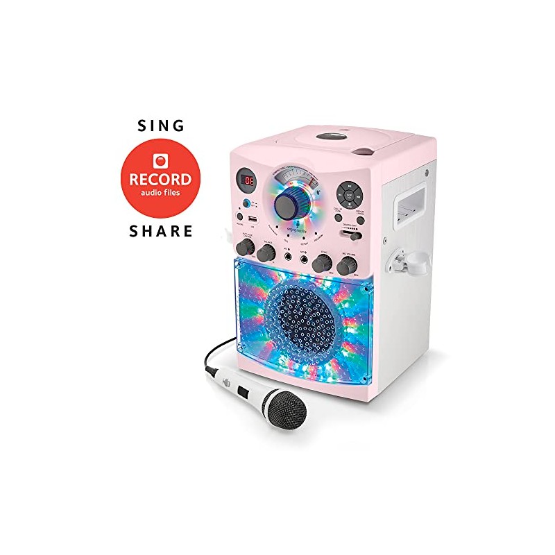 Singing Machine SML385UP Bluetooth Karaoke System with LED Disco Lights, CD+G, USB, and Microphone, Rose Gold/Frosted Pink []