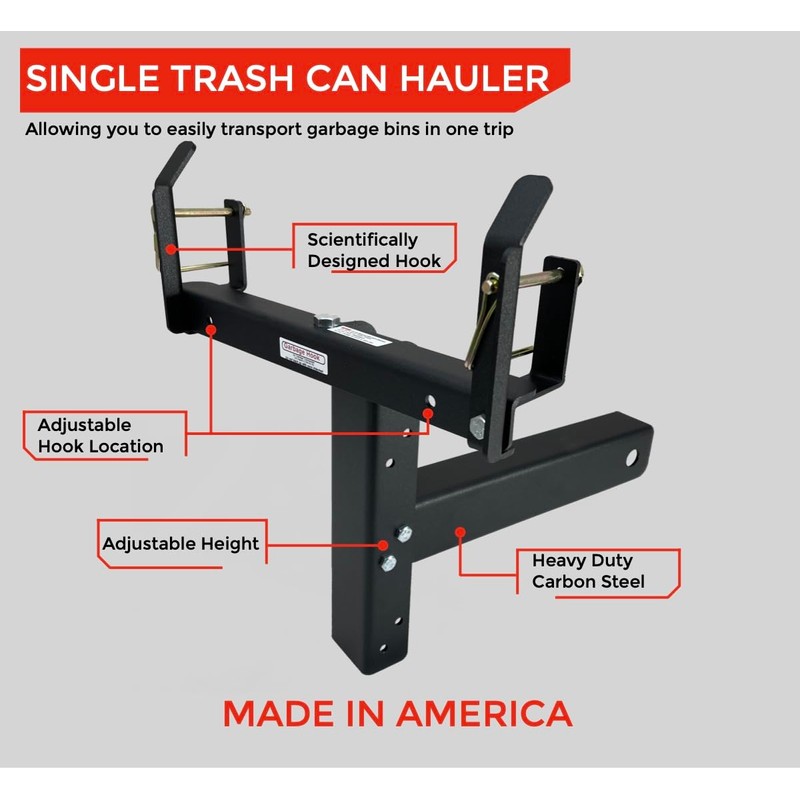 American Made Premium Single Can Receiver Garbage Hauling Hitch - by Garbage Commander