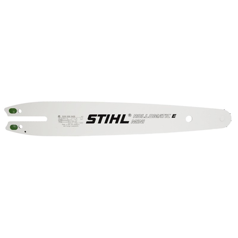 This guide bar combines durability with precision engineering to deliver consistent performance for your STIHL equipment. The Rollomatic E Mini design is a durable laminated guide bar made of high-grade steel, designed for increased cutting efficiency and reduced wear. Its integrated sprocket allows for a narrower nose, making it ideal for tasks like limbing and boring, especially with pole pruners and arborist applications.