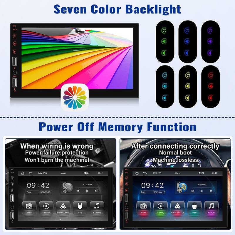 • Support USB/AUX Audio, Fast Charging: You can add a U disk to this car radio for audio/video files through the USB port. The auxiliary input is compatible with audio output from smartphones and MP3 players. Charging function, the USB interface supports cell phone charging, don't worry about running out of power.And car in-Dash navigation GPS units Support Colorful backlight button display