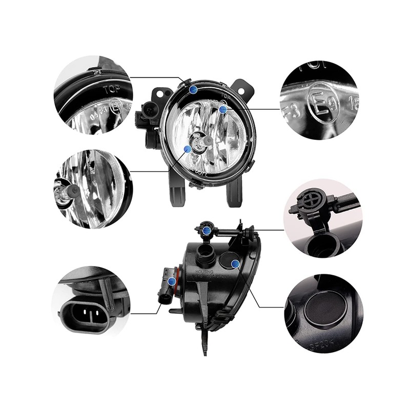 - Emark certified: fog lights have E9 certificate. Number of OEM: R:63177248912 / 7248912; L:63177248911 / 7248911.