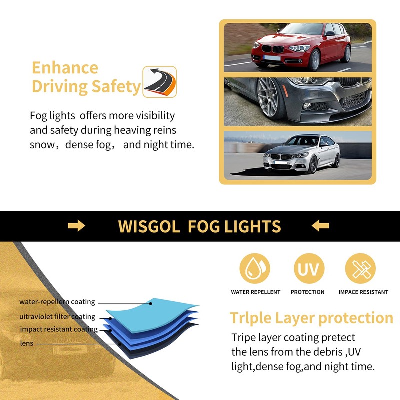- EXCELLENT QUALITY:Fully sealed, waterproof, dust and corrosion resistant makes the fog light good performance and prevents moisture and dust from entering the housing. The durable fog lights in excellent quality offer you the best driving experience even in the harshest weather conditions.