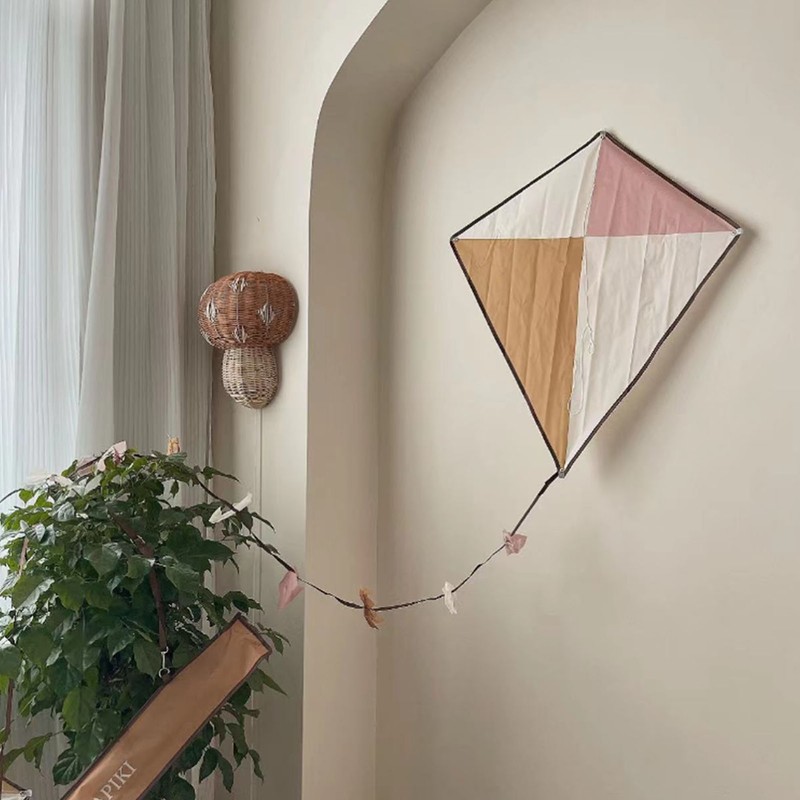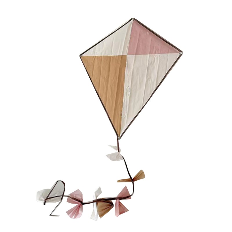 Single Wheel Kite 3D Clipping Simple Assembly Vintage Simple Diamond Kite for Kids Adults Beginners Pink and Coffee