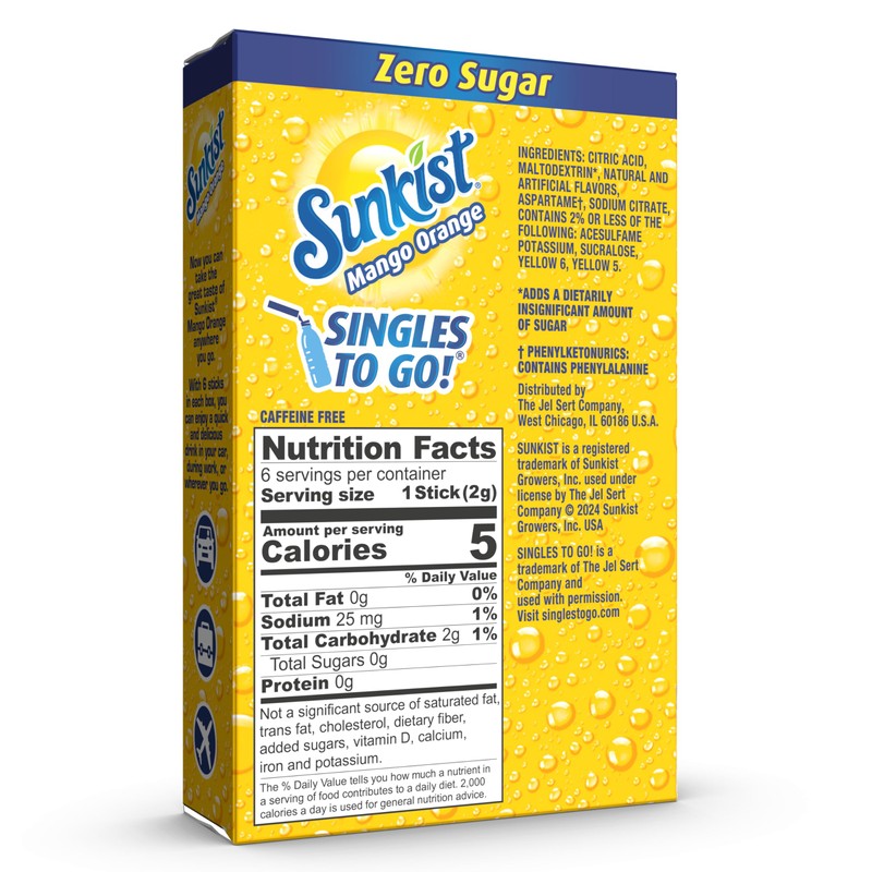 • ZERO SUGAR: Sunkist Soda Singles To Go Drink Mix is sugar free, caffeine free, and non-carbonated.