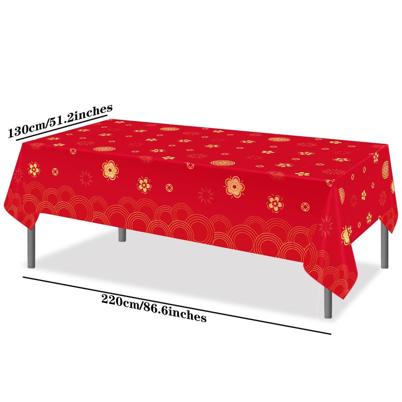 • [Disposable Rectangular Tablecloths]: 2 bags of Chinese New Year tablecloths, each 130x220cm/51.18x86.6 inches in size, with bright red and copper coins, flowers, fireworks and other designs, which complement any tableware and are suitable for most small rectangular tables.