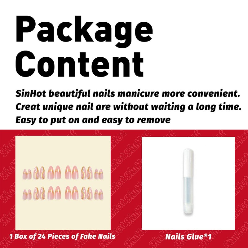 - [Medium Almond Press on Nails Design] - 24pcs of medium almond press on nails. Provides your nails an excellent and charming look. Excellent quality, and easy to use, considering the difference of each person's fingernails, which is individually numbered 0-9, choose 10 pieces press on nails from the 24 pieces.(with1 x glue)