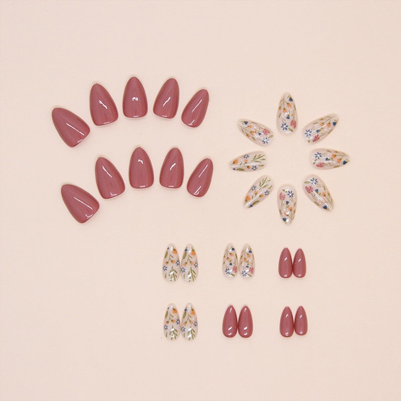 - [Medium Almond Press on Nails Design] - 24pcs of medium almond press on nails. Provides your nails an excellent and charming look. Excellent quality, and easy to use, considering the difference of each person's fingernails, which is individually numbered 0-9, choose 10 pieces press on nails from the 24 pieces.(with1 x glue)