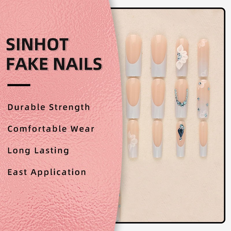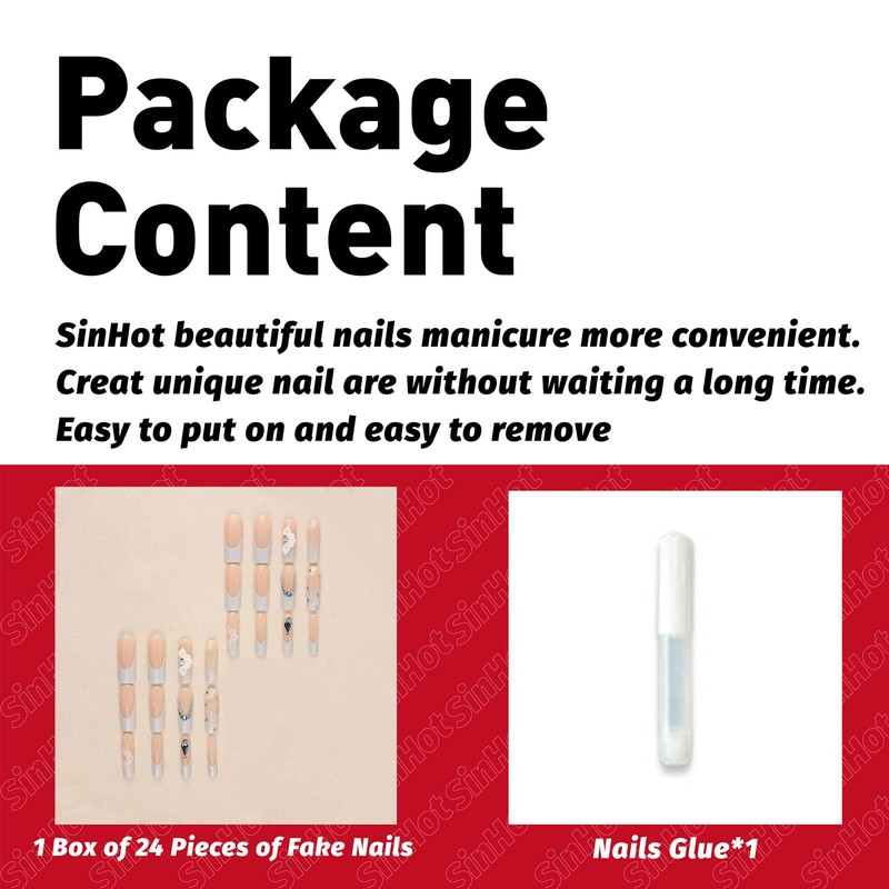 - [Use False Nails Saving Time]-Just 3 minutes. Long Square press on nails with designs, you could get the same nice effect by yourself instead of spending half an hour and paying for the expensive manicure service in the nail salon.