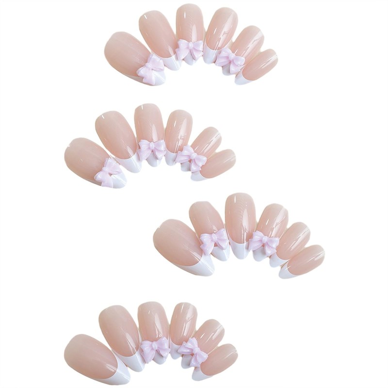 4. Select a right size of the nail, apply the glue to the back of the nail or use the adhesive tabs to attach the back of the nail and put it on your fingernails.
