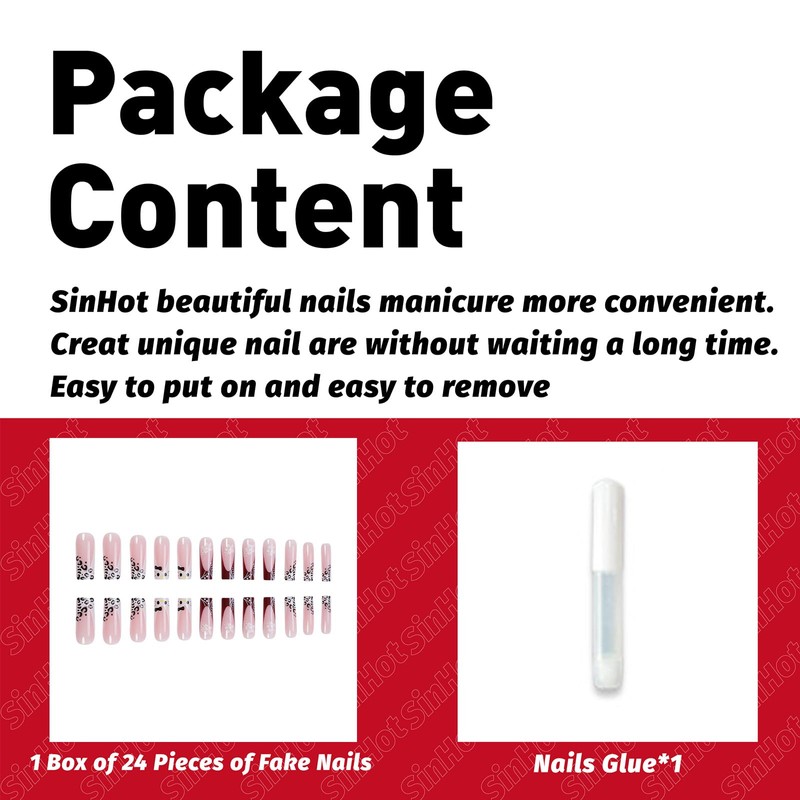 - [Long Square Press on Nails Design] - 24Pcs of Long Square Press on Nails. Provides your nails an excellent and charming look. Excellent quality, and easy to use, considering the difference of each person's fingernails, which is individually numbered 0-9, choose 10 pieces press on nails from the 24 pieces.(with1 X Glue)