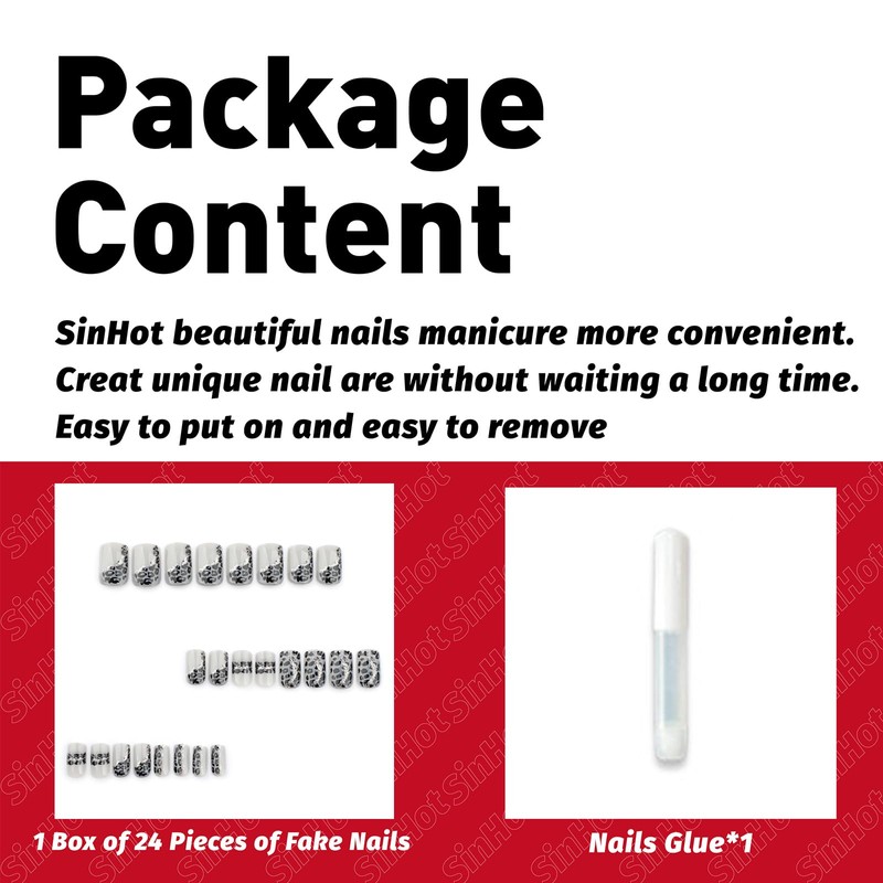 - [Medium Square Press on Nails Design] - 24pcs of medium square press on nails. Provides your nails an excellent and charming look. Excellent quality, and easy to use, considering the difference of each person's fingernails, which is individually numbered 0-9, choose 10 pieces press on nails from the 24 pieces.(with1 x glue)