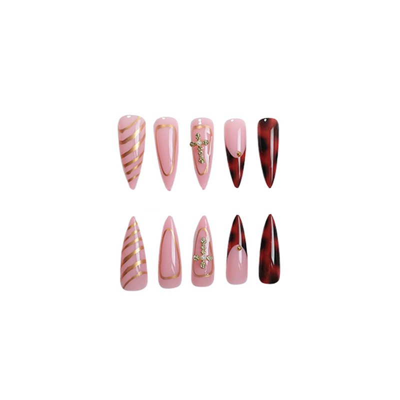 - [Long Stiletto Press on Nails Design] - 24pcs of long stiletto press on nails. Provides your nails an excellent and charming look. Excellent quality, and easy to use, considering the difference of each person's fingernails, which is individually numbered 0-9, choose 10 pieces press on nails from the 24 pieces.(with1 X Glue)