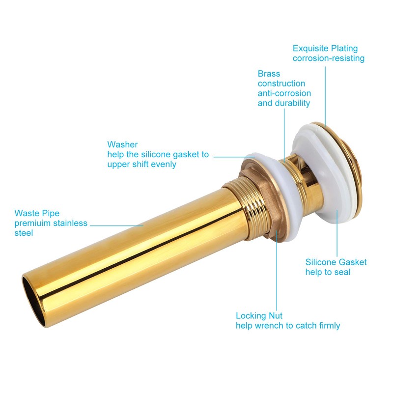 • PREMIUM MATERIALS FOR LONG-LASTING PERFORMANCE: Constructed from high-quality brass and stainless steel, this Sink Drain without Overflow is designed for superior hardness. Its robust materials ensure no deformation, providing longlasting durability and reliability for your sink drainage needs