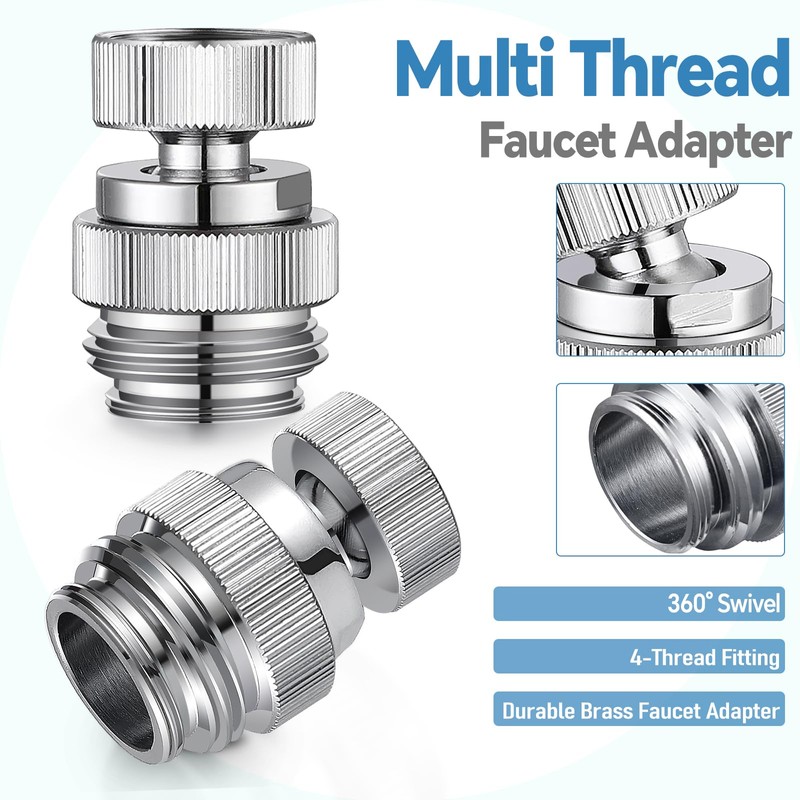 MINGOR-Style Sink Faucet Adapter Kit Swivel Aerator Adapter to Connect Garden Hose - Multi-Thread Garden Hose Adapter for Female to Male, Polished Chrome
