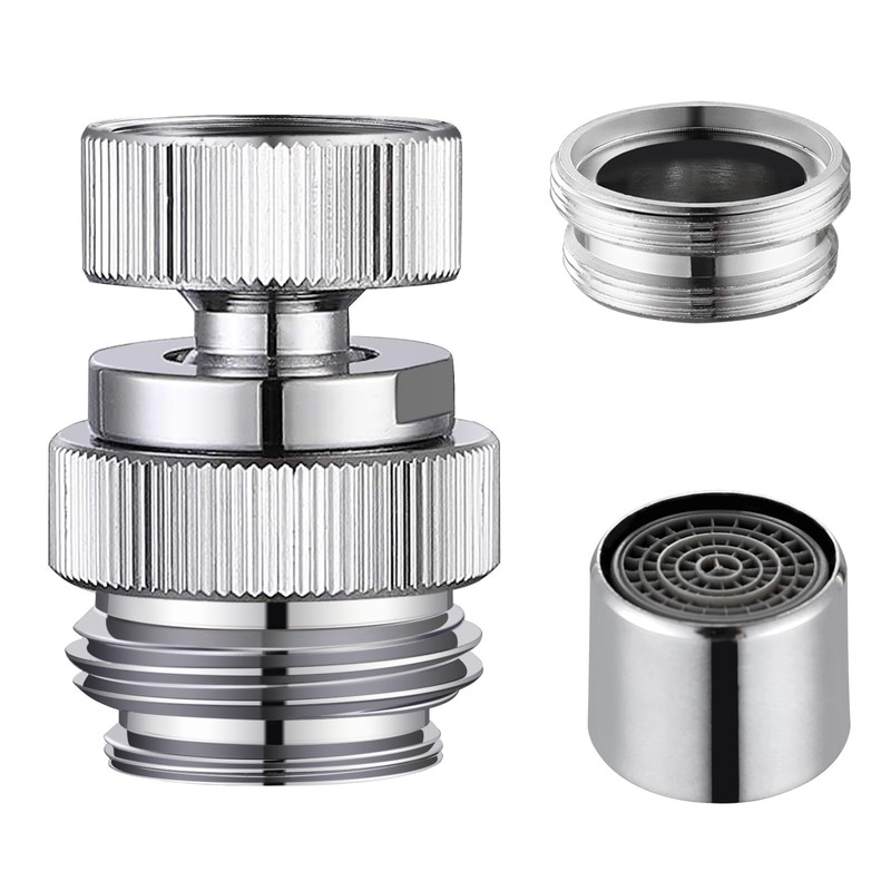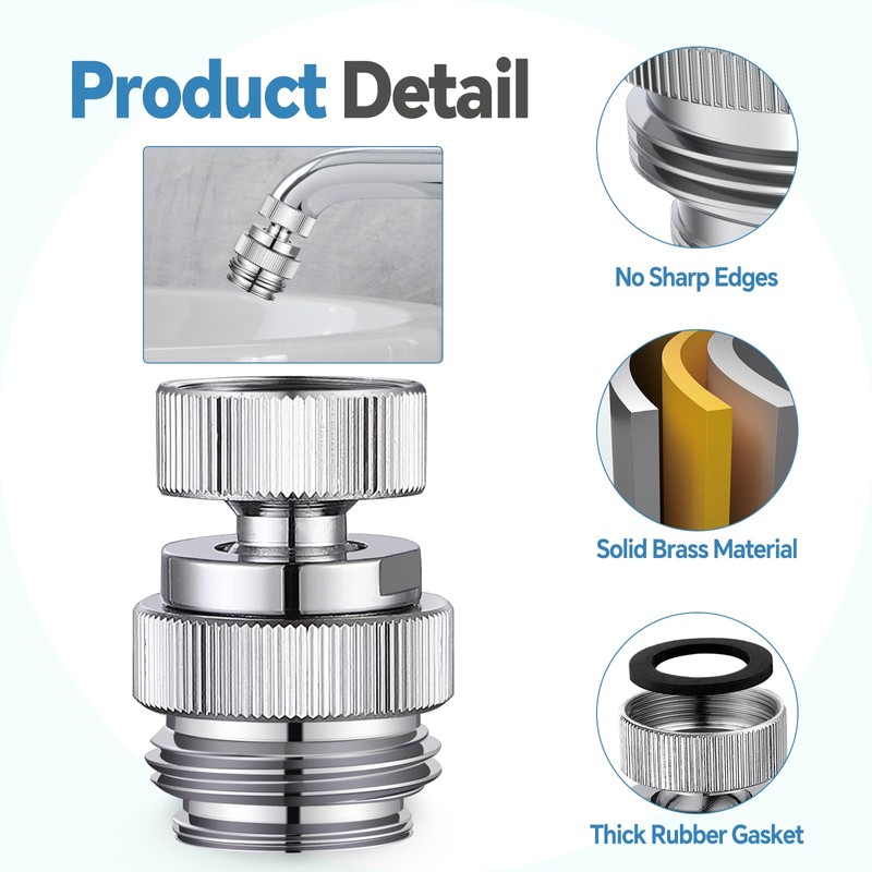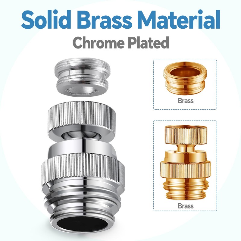 - ▶【Quality Material】:Made of solid brass material, polished chrome plated finish, wear-resist and durable to use. Brass swivel ball connector, leak-proof and rotate freely. 360° Rotatable faucet adapter makes your garden hose swivel when connected. If garden hose not in use, connect the aerator to the adapter directly, then it becomes swivel faucet aerator.