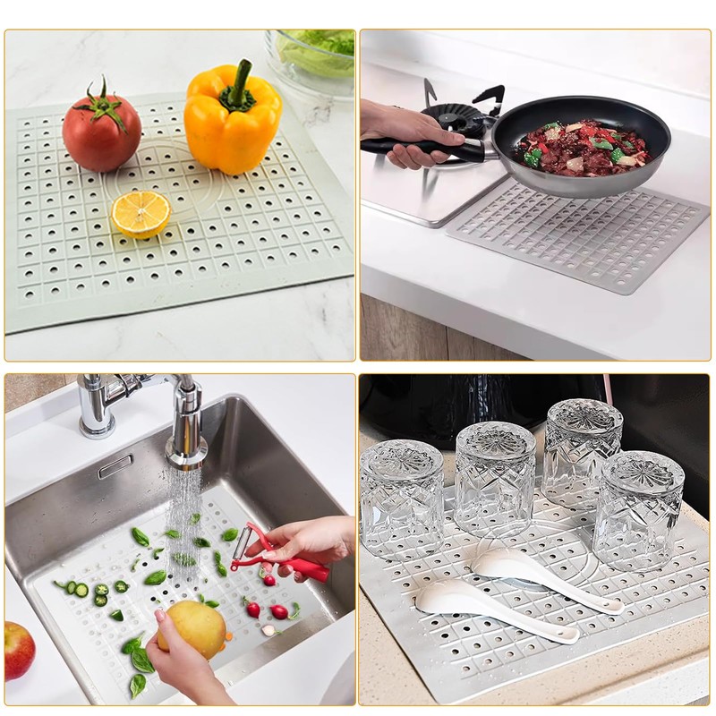 - 【Material】Our silicone sink mat are made of high-quality rubber, the drainage hole pattern allows excess water to drain through the holes, can withstand daily use