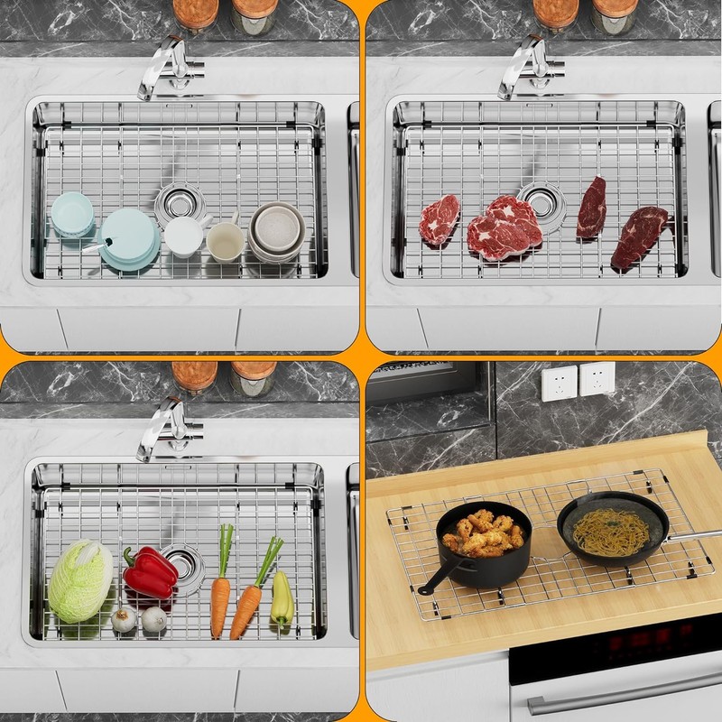 - High-quality stainless steel-This high-quality sink grid is made of corrosion-resistant and rust-resistant chrome-plated stainless steel. The excellent surface treatment looks smooth, modern and stylish in your kitchen sink.